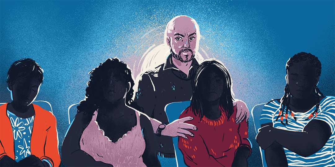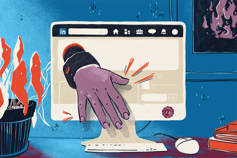 Ilustrações criadas para matéria investigativa do Intercept, na qual várias mulheres acusaram um consultor de tecnologia de assédio sexual durante entrevistas de emprego.
