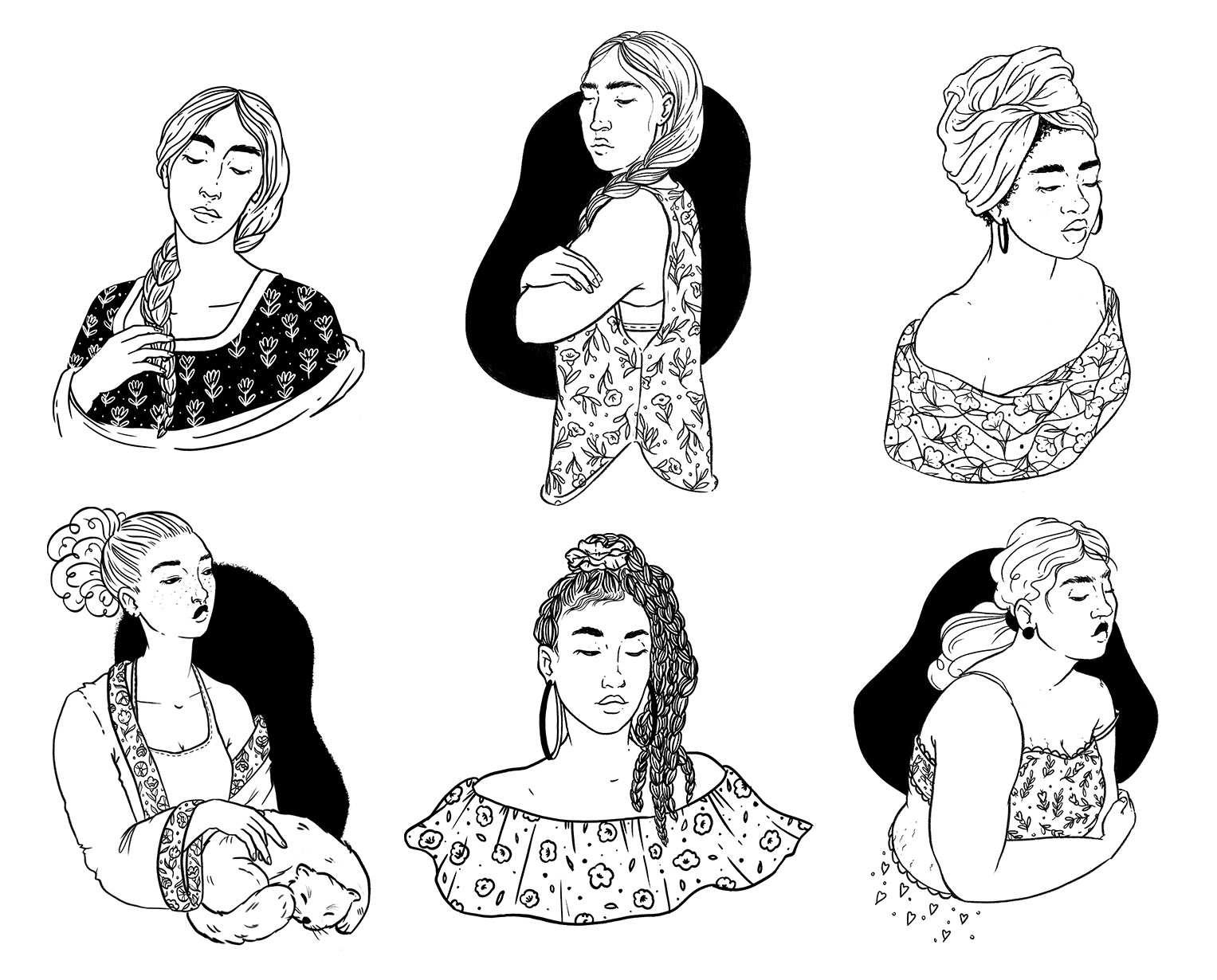 Em março de 2018, criei essa série de ilustrações acompanhadas de frases sobre violência de gênero. Elas foram espalhadas pela cidade através de lambe-lambes e adesivos.