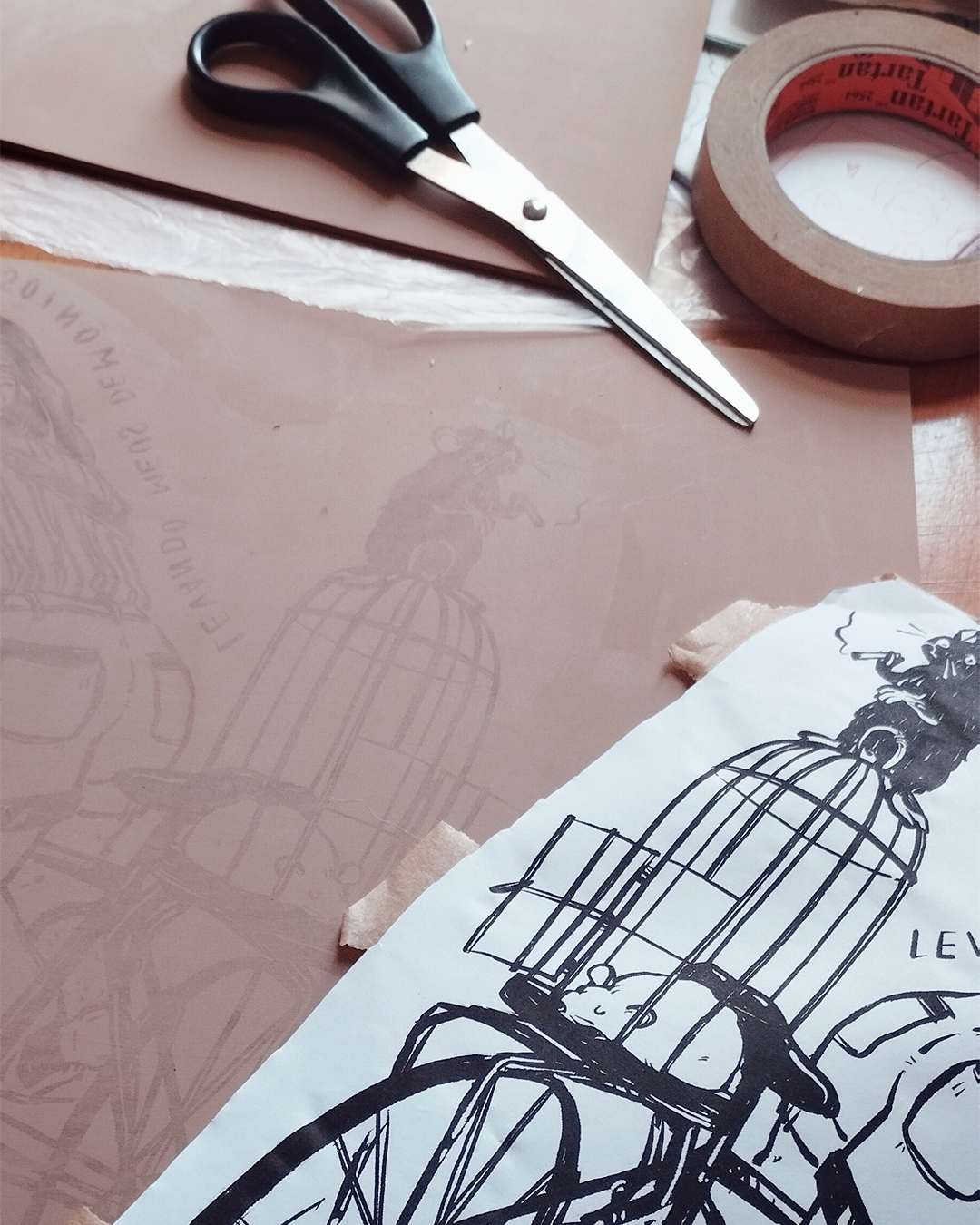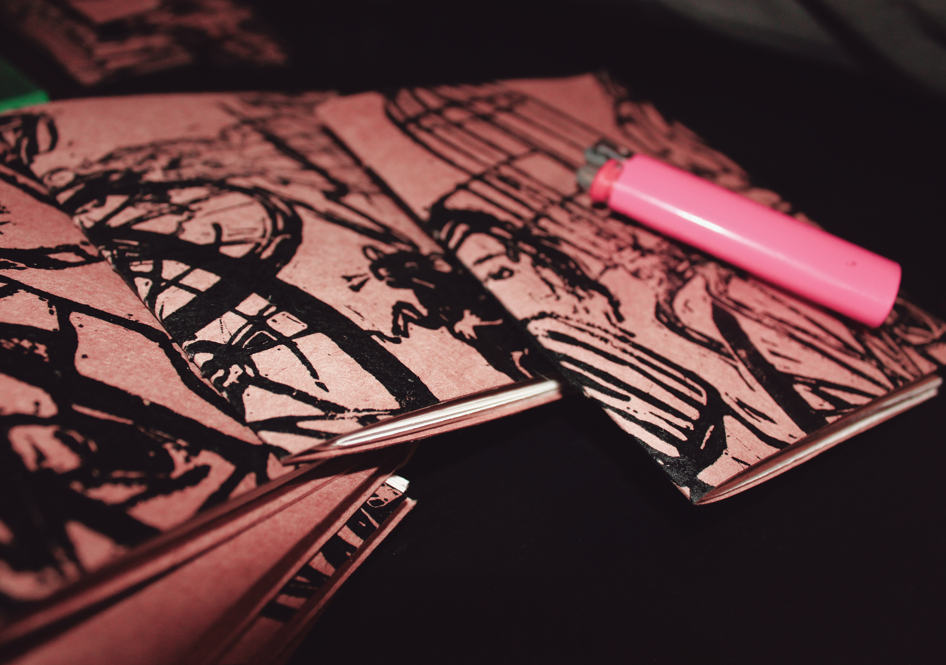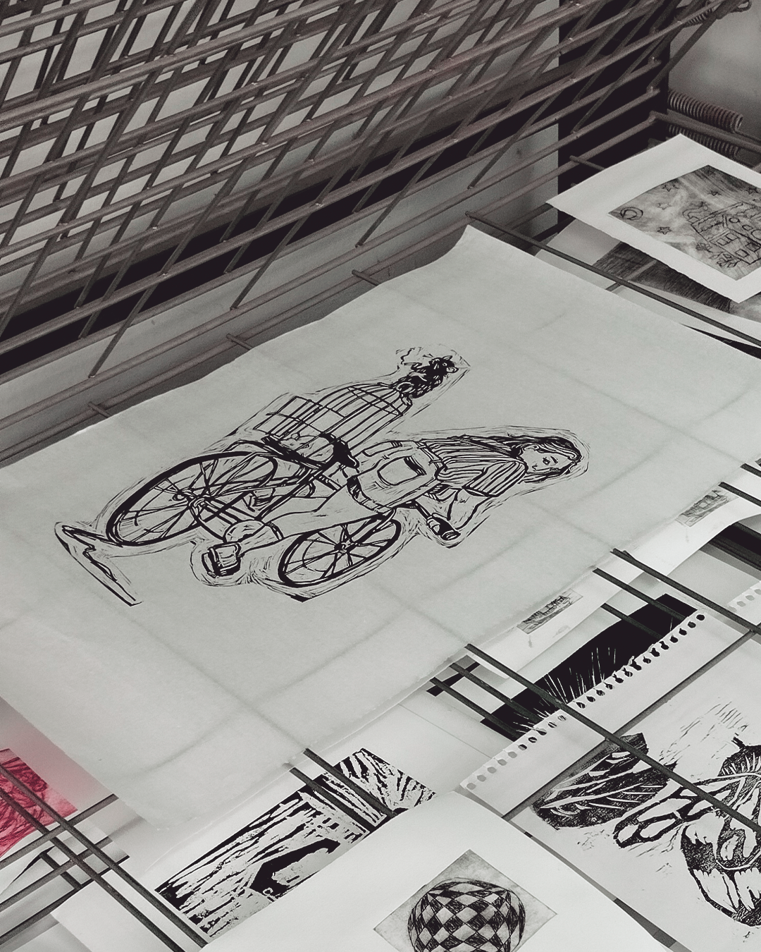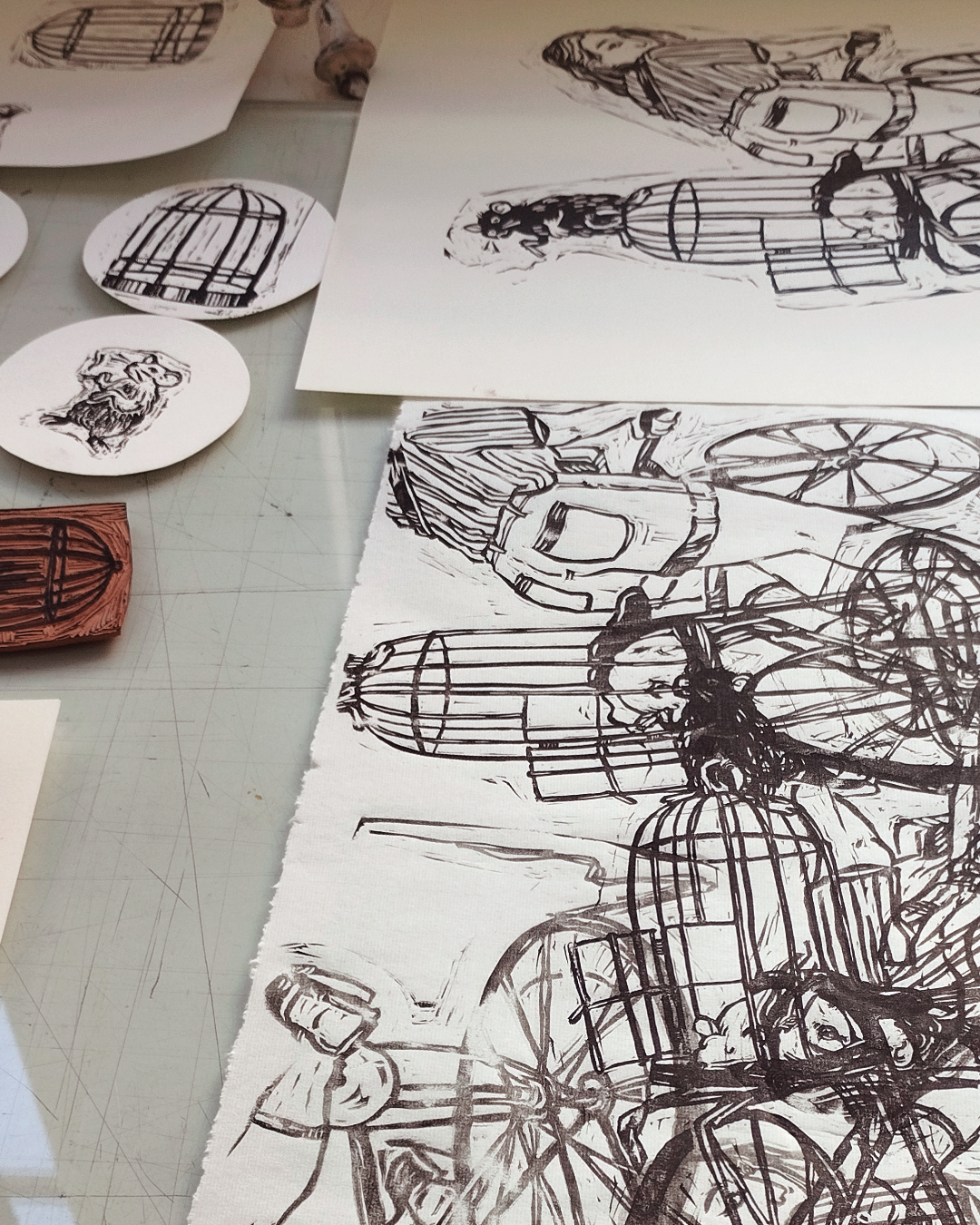 Projeto pessoal com ilustração digital e experimentação em linoleogravura